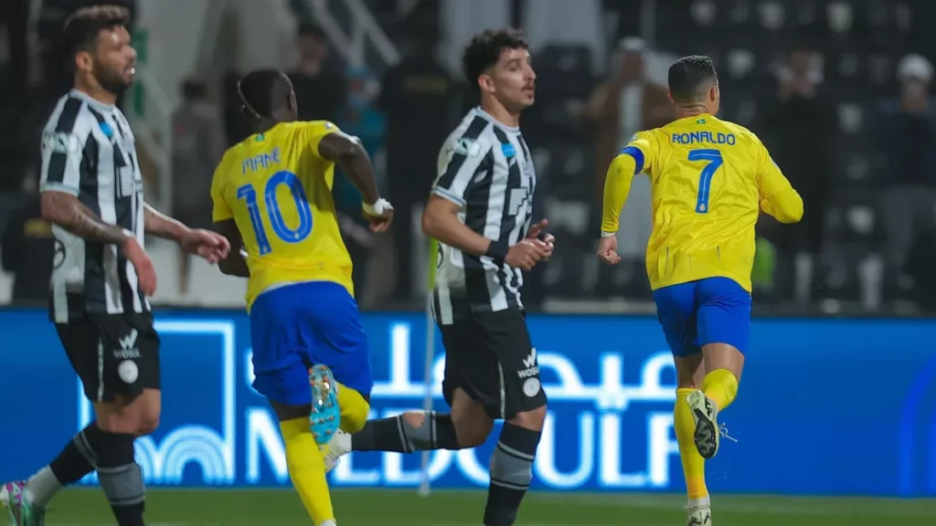 وافتتح كريستيانو رونالدو أهداف اللقاء لصالح النصر في الدقيقة 21، من علامة الجزاء، سددها بقوة على يمين حارس الشباب.