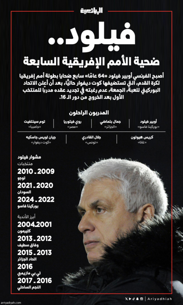 أصبح الفرنسي أوبير فيلود سابع ضحايا بطولة أمم إفريقيا لكرة القدم، التي تستضيفها كوت ديفوار حاليًّا، بعد أن أعلن الاتحاد البوركيني للعبة، الجمعة، عدم رغبته في تجديد عقده مدربًا للمنتخب الأول.