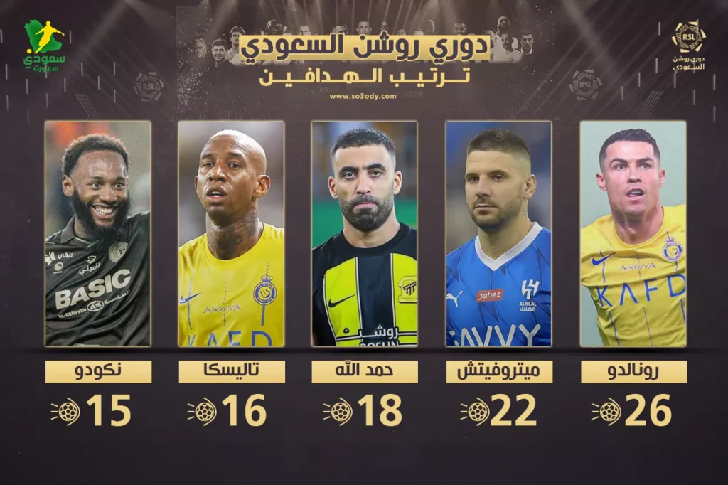 ترتيب هدافي دوري روشن بعد الجولة “25”|رونالدو يبتعد عن نجم الهلال
