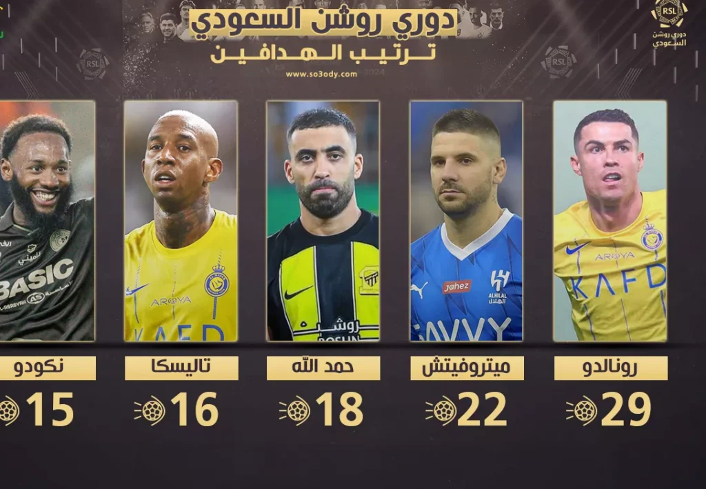 ترتيب هدافي دوري روشن بعد الجولة “28”..رونالدو يضمن الصدارة