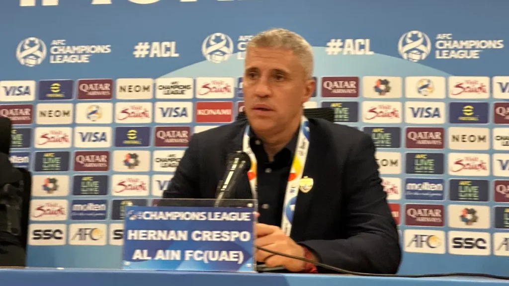 وتحدث الأرجنتيني كريسبو مدرب العين، في المؤتمر الصحفي الذي تبع المواجهة.
