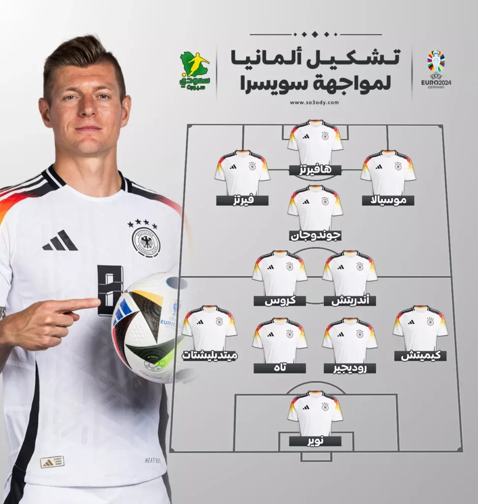 ويخوض منتخب ألمانيا المباراة ضد سويسرا كالأتي: