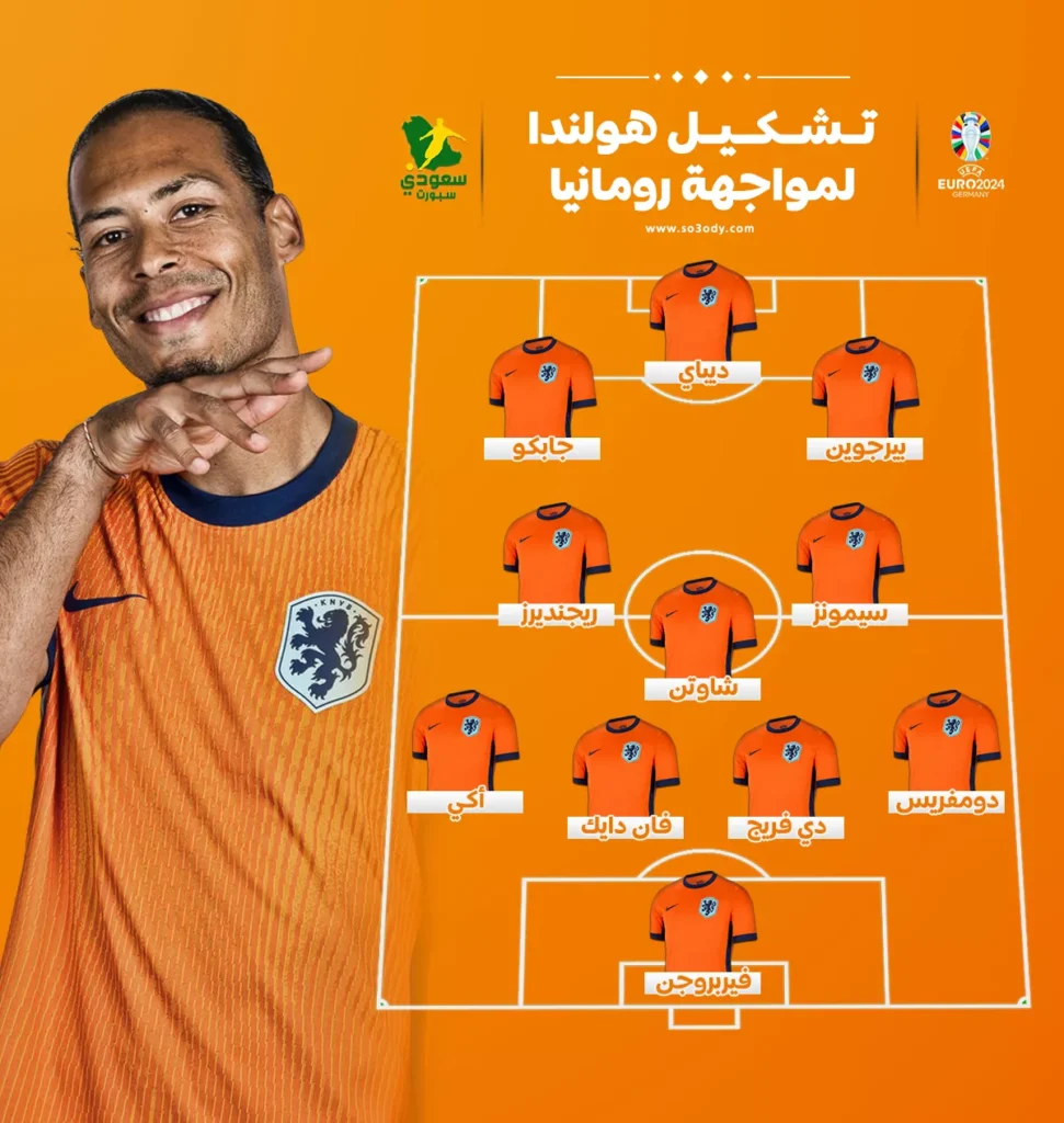 ويخوض منتخب هولندا المباراة بتشكيل مكون من: