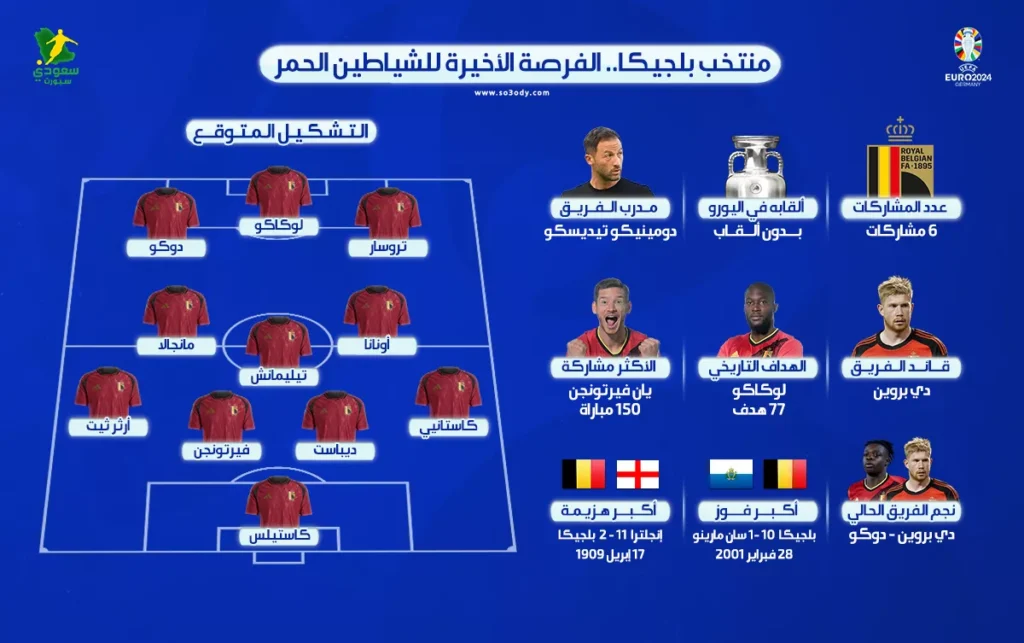 التشكيل المتوقع للمنتخب البلجيكي في كأس الأمم الأوروبية “يورو 2024”: