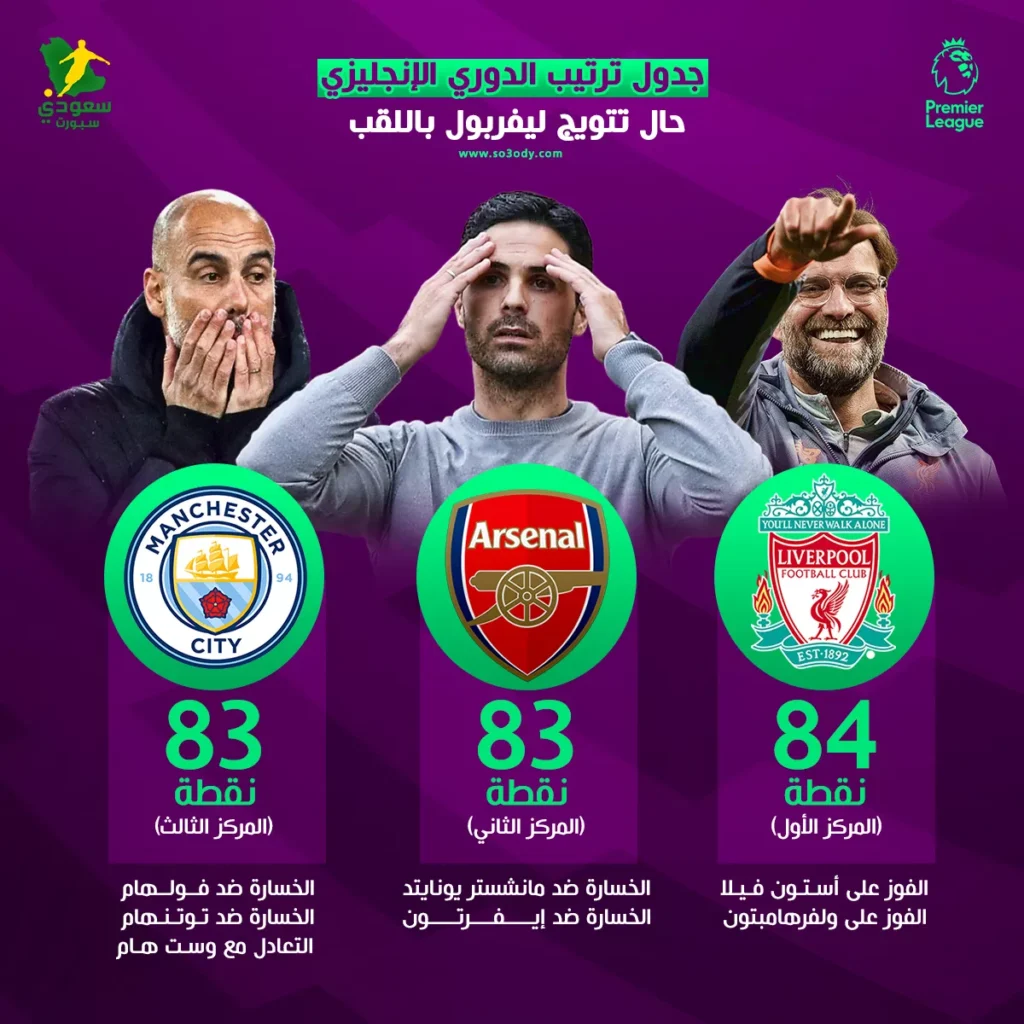 نهاية مجنونة.. جدول ترتيب الدوري الإنجليزي حال تتويج ليفربول